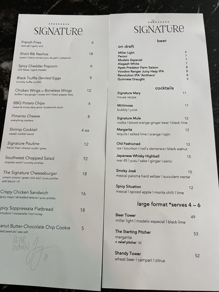 Located in 1312 S Wabash Chicago, IL 60605, Signature Bar offers a casual and trendy atmosphere perfect for intimate gatherings or group outings. The menu features a variety of sandwiches like the Bad BUNNi and Guaco, along with sides like hashbrowns and spicy blueberry jam. Customers rave about the friendly staff, extensive beer selection, and delicious food, with standout dishes like the chicken sandwich with spicy mayo and the lobster dip. The upscale bar boasts a cozy vibe with low lighting and modern design, making it a great spot for a date or special event. While some dishes like the salad and deviled eggs may not impress everyone, overall, Signature Bar offers a top-notch dining experience with great service and ambiance.